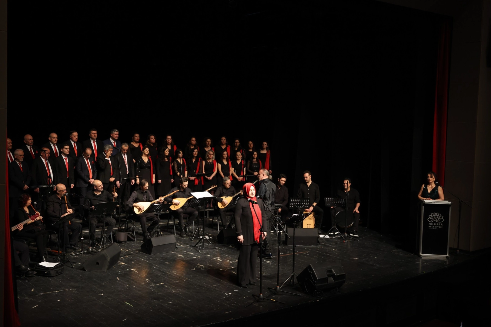 Nilüfer Belediyesi Türk Halk Müziği Korosu, yeni sezona muhteşem konserle başladı. Kurulduğu 2004 yılından bu yana kentin kültür ve sanat hayatına önemli katkı sağlayan topluluk, adından söz ettirecek bir konsere daha imza attı. Nâzım Hikmet Kültürevi’ndeki programa ilgi yoğun oldu. Konseri Nilüfer Belediyesi Meclis Üyeleri Demirhan Aslan ve Ali Sezgin’in yanı sıra çok sayıda sanatsever izledi. Yaşar Kemal Alim şefliğinde Türk halk müziğinin seçkin eserlerinden oluşan bir repertuar ile sahne alan koro, enstrümanlar eşliğinde etkileyici bir performans gösterdi. Koro ve solo şarkılarla Anadolu’nun ezgilerini seslendiren topluluk, izleyenlere keyifli bir akşam yaşattı. Programın sonunda koro üyelerini tebrik eden Nilüfer Belediyesi Meclis Üyesi Demirhan Aslan, şef Yaşar Kemal Alim’e çiçek takdim ederek, teşekkür etti.