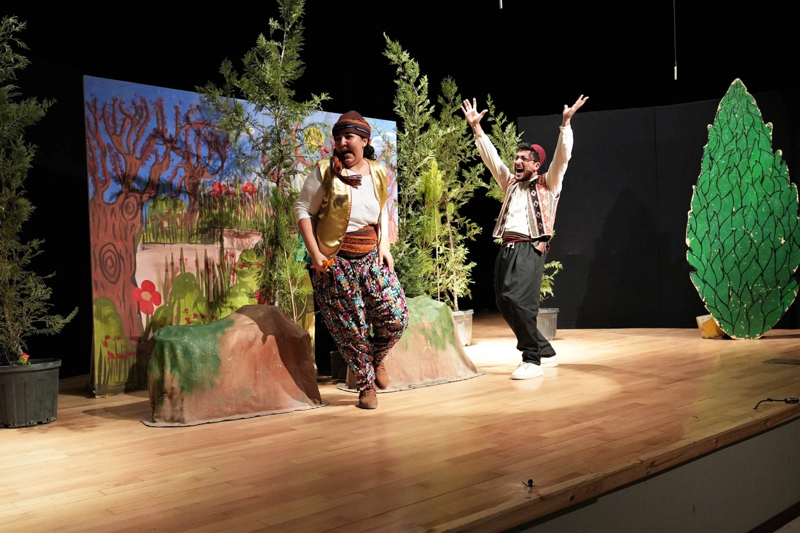 Ormanda yaşayan iki sevimli arkadaşın paylaşmayı öğrenme hikâyesini konu alan oyun, paylaşmanın dostluğu güçlendirdiğini ve mutluluğu çoğalttığını eğlenceli bir dille anlattı. Oyun boyunca çocuklar zaman zaman karakterlere eşlik ederken, salonda kahkahalar eksik olmadı.