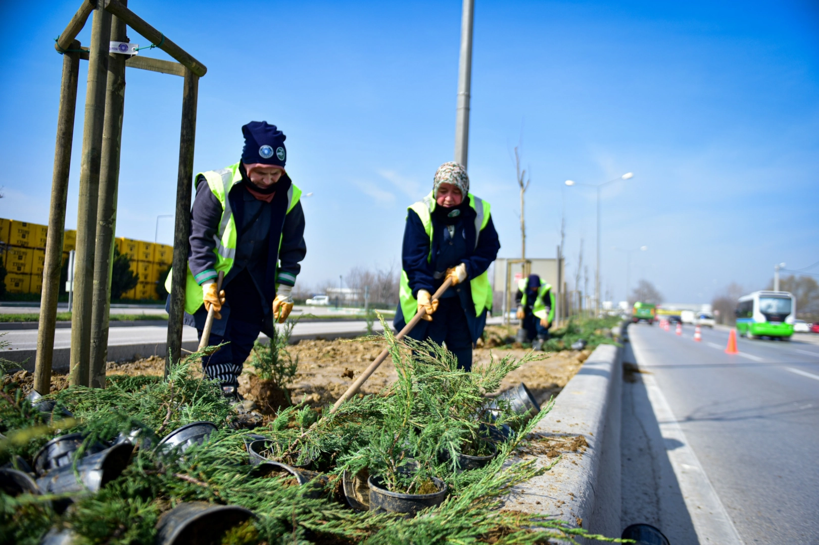 Bursa Büyükşehir Belediyesi Park ve Bahçeler Dairesi Başkanlığı tarafından 11 Eylül Bulvarı, Otosansit Samanlı Kavşağı ve Kestel ilçesi Ankara Bulvarı’nda kapsamlı peyzaj düzenlemeleri gerçekleştirildi. Kestel Ankara Bulvarı’ndaki orta refüjde 25 bin 960 metrekare rulo çim serimi ve 14 bin 728 metre yüksek bordür uygulaması yapan ekipler, toprak altı sulama sistemi kurulumunu ve eksik ağaçların dikimini tamamladı. 11 Eylül Bulvarı’nda ise 6.400 metre yüksek bordür uygulaması yapan ekipler, 250 adet çınar ağacı ve 50.000 adet çalı dikimi gerçekleştirdi. Ekipler, Otosansit ile Samanlı Kavşağı arasındaki güzergahta da 3.400 metre yüksek bordür uygulamasını tamamladı. Büyükşehir Belediyesi yetkilileri, Bursa’nın yeniden yeşil kimliğine kavuşabilmesi için kentin farklı noktalarında peyzaj ve ağaçlandırma çalışmalarının devam edeceğini belirtti.