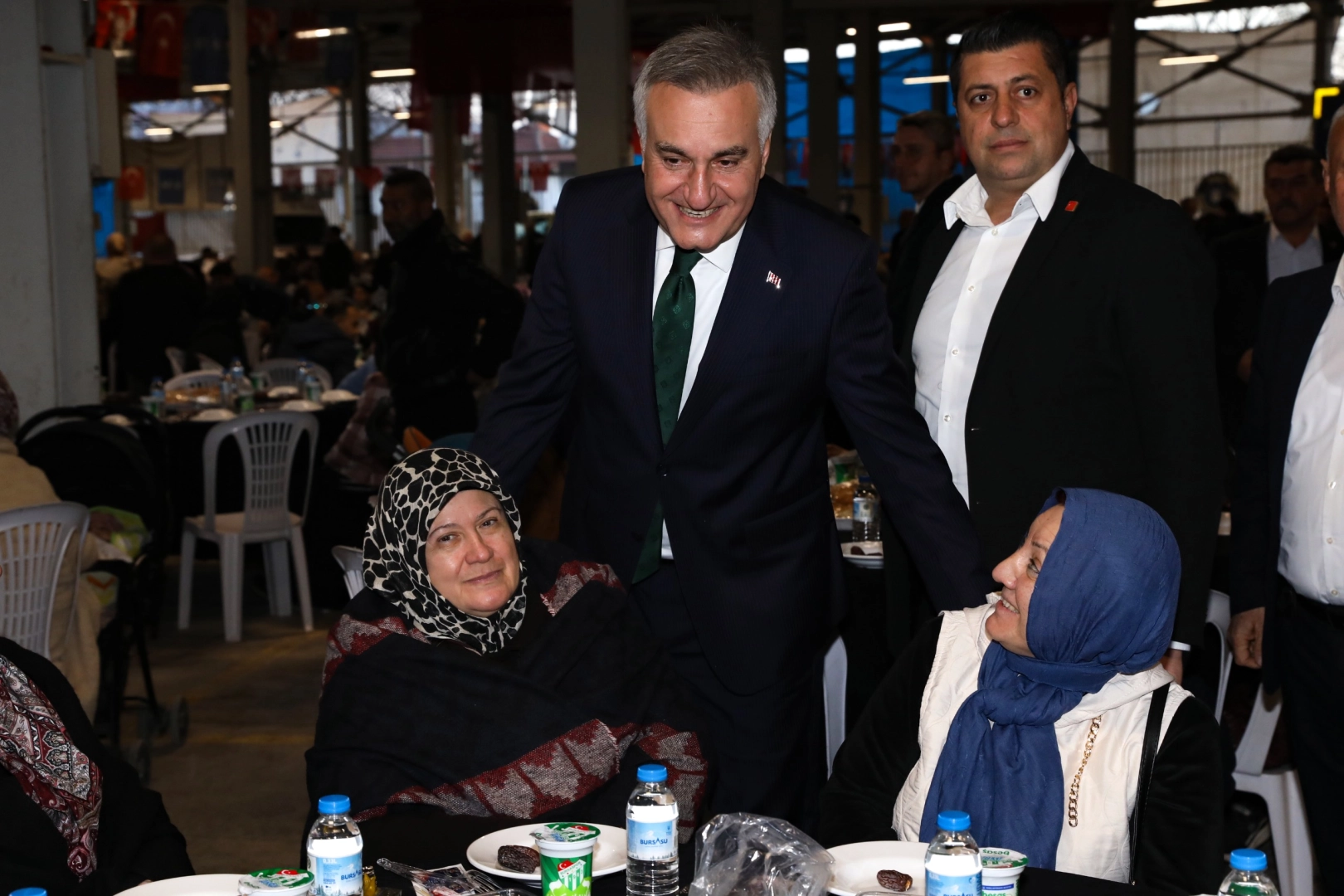 Yenişehir Kapalı Pazar Alanı’nda gerçekleştirilen iftar programına ilçe sakinleri yoğun ilgi gösterdi. Programa, Bursa Büyükşehir Belediyesi Başkanvekili Mustafa Orkun Gazioğlu, Büyükşehir Belediyesi Genel Sekreter Yardımcısı Mehmet Tözün Bingöl, CHP Yenişehir İlçe Başkanı Deniz Dörtkardeş, muhtarlar, meclis üyeleri, sivil toplum kuruluşlarının üyeleri, meslek odalarının başkanları ve Büyükşehir Belediyesi yöneticileri de katıldı. Akşam ezanının okunmasıyla birlikte vatandaşlar hep birlikte oruçlarını açtı. Ramazan ayının paylaşma ve dayanışma duygularını güçlendirdiğini söyleyen Başkanvekili Mustafa Orkun Gazioğlu, “Yenişehir, bereketli toprakları, üretken insanları ve köklü geçmişiyle Bursa’nın en önemli ilçelerinden biridir. Tarımıyla, emeğiyle ve alın teriyle kent ekonomisine önemli katkı sunan hemşehrilerimizin gayretini her zaman takdir ediyoruz. Büyükşehir Belediyesi olarak bizler de üreticilerimize her zaman destek oluyoruz. Kentin her noktasında çalışmalarımızı sürdürüyoruz. Her bir hemşehrilerimizin hayatını kolaylaştırmak için mücadele ediyoruz. Halkımızın şimdiden Ramazan Bayramı’nı tebrik ediyorum” dedi. CHP Yenişehir İlçe Başkanı Deniz Dörtkardeş ve Yenişehir Muhtarlar Derneği Başkanı İsmail Yüksel ise Ramazan’ın bereketini ilçede düzenlediği programlarla hissettiren Bursa Büyükşehir Belediye Başkanı Mustafa Bozbey’e teşekkür etti. Başkanvekili Gazioğlu ve beraberindekiler, teravih namazının ardından Yenigün Mahallesi Hatuniye Camii’nde vatandaşlara tatlı ikramında bulundu.