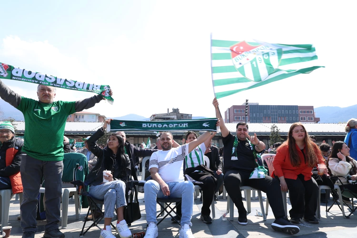 Kentin en önemli değerlerinden Bursaspor’a olan desteğini her alanda sürdüren Osmangazi Belediyesi, yeşil-beyazlı takımın Nesine 2. Lig 32. haftasında deplasmanda karşılaştığı Ankara Demirspor mücadelesi için Osmangazi Meydanı’nda dev ekran kurdu.