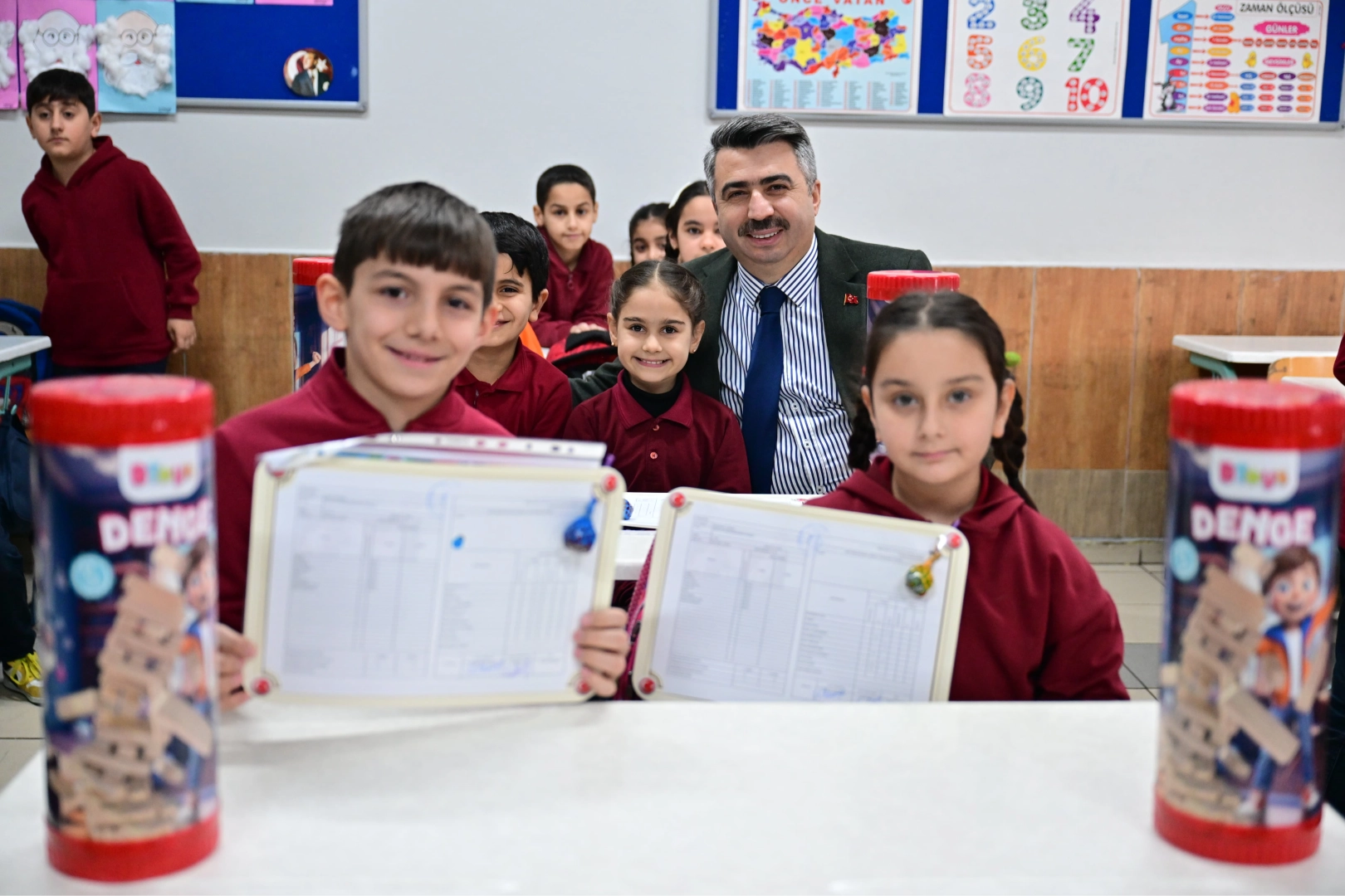 Eğitimden spora, kültürden sanata kadar gençleri ve çocukları hayatın her alanında destekleyen Yıldırım Belediye Başkanı Oktay Yılmaz, Yıldırım Kaymakamı Metin Esen ve İlçe Milli Eğitim Müdürü Mustafa Sevinç ile birlikte Değirmenönü İlkokulu’nda düzenlenen karne törenine katıldı. Öğretmenler odasını ziyaret ederek öğretmenlerle sohbet eden Başkan Oktay Yılmaz, ardından da Kaymakam Metin Esen ve İlçe Milli Eğitim Müdürü Mustafa Sevinç’le birlikte sınıfları gezdi. Yakından ilgilendiği öğrencilere çeşitli hediyeler veren Başkan Yılmaz, 2025-2026 Eğitim Öğretim Yılı’nın ilk dönemini tamamlayan miniklere karnelerini dağıttı.