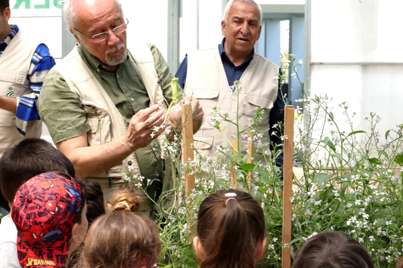 Osmangazi Belediyesi'nin iştiraki Gazi Tarım A.Ş. serasını ziyaret eden Haymeana Anaokulu öğrencileri, Genel Müdür Arca Atay eşliğinde tohum ekme ve fide dikimi yaparak gıdaların üretim sürecini uygulamalı olarak öğrendi.