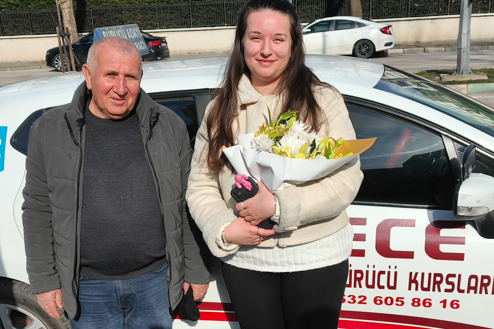 Ece Sürücü Kursu’nda eğitim alan Hüsnanur Berber, girdiği ehliyet sınavlarının tamamını ilk seferde başarıyla geçerek büyük bir mutluluk yaşadı. Başarısını çiçeklerle kutlayan Berber, hem kurs yönetimine hem de görev yapan eğitmenlere teşekkür etti.