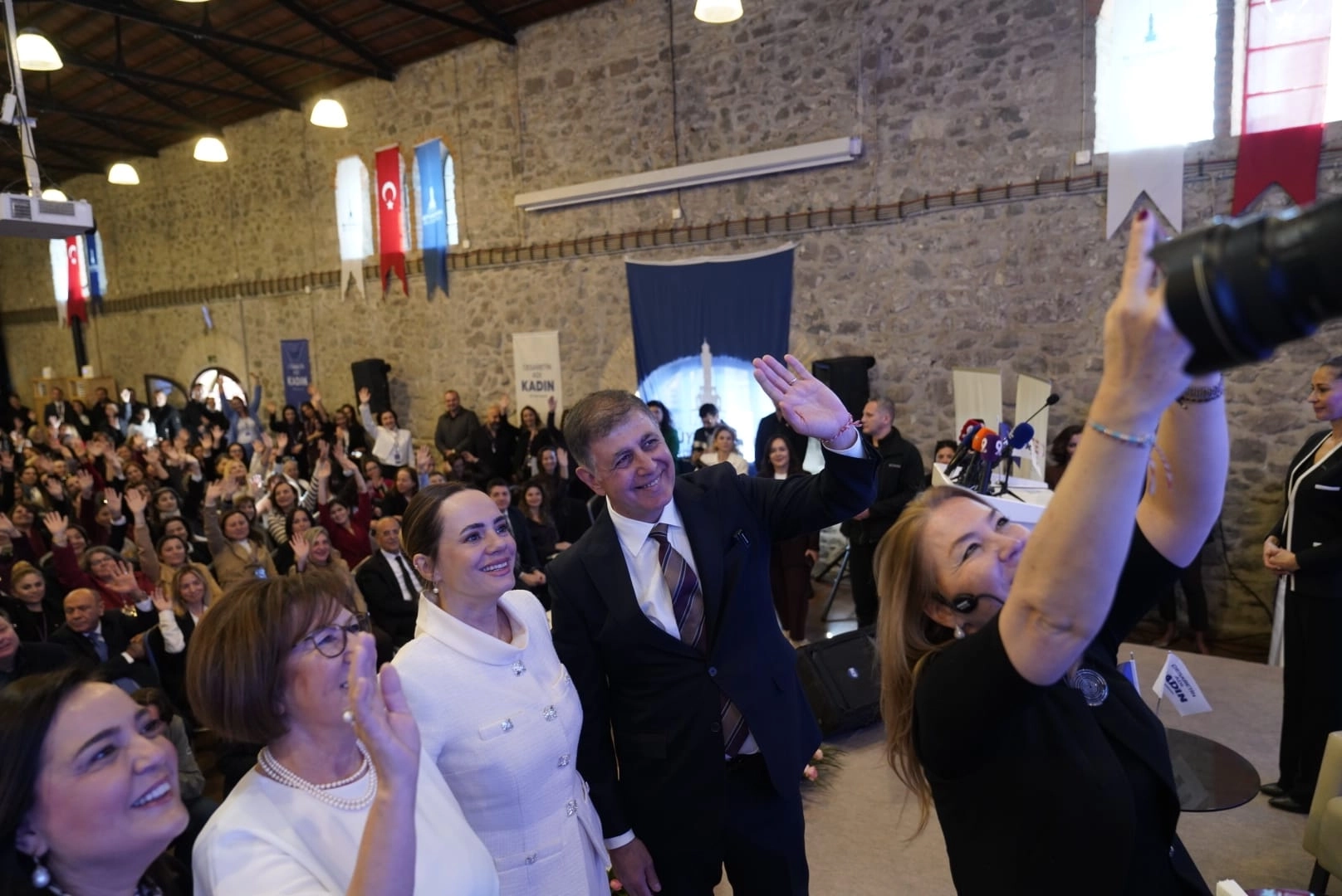 Mustafa Kemal Atatürk’ün “Dünyada hiçbir milletin kadını, ben Anadolu kadınından daha fazla çalıştım. Milletimi kurtuluşa ulaştırmakta daha fazla emek verdim, diyemez” sözlerini hatırlatan Öznur Tugay, “Mustafa Kemal Atatürk, bu sözleriyle Türk kadınının değerini ne güzel vurgulamış. Birçok Avrupa ülkesi daha kadınlara seçme ve seçilme hakkı tanımamışken o bu hakkı tanımıştı. 103 yıl önce İzmir İktisat Kongresi’nde çizdiği vizyonla kadının yalnızca aile içinde değil üretimde, ekonomide ve toplumsal hayatın her alanında güçlü bir özne olmasının yolunu açtı. Bugün burada İzmir’in güçlü kadınlarının bir araya gelerek attığı bu adım sadece bir başlangıç değildir. Kadınların emeğinin, üretiminin ve dayanışmasının büyüdüğü bir geleceğin habercisidir. Çünkü biliyoruz ki bir kadının hayatına dokunan her adım aslında toplumun yarınını değiştirir ve biz inanıyoruz ki; kadınlar birlikte yürüdüğünde hiçbir hedef uzak değildir. Emeğiyle üreten, bilgisiyle yol gösteren, cesaretiyle ilham veren, yaşamı varlığıyla güzelleştiren tüm kadınların 8 Mart Dünya Emekçi Kadınlar Günü’nü kutluyorum. İyi ki varsınız, iyi ki varız, iyi ki birlikteyiz. Bu ülkede kendi ayakları üzerinde duran her kadının arkasında tek bir erkek vardır; Mustafa Kemal Atatürk” dedi.