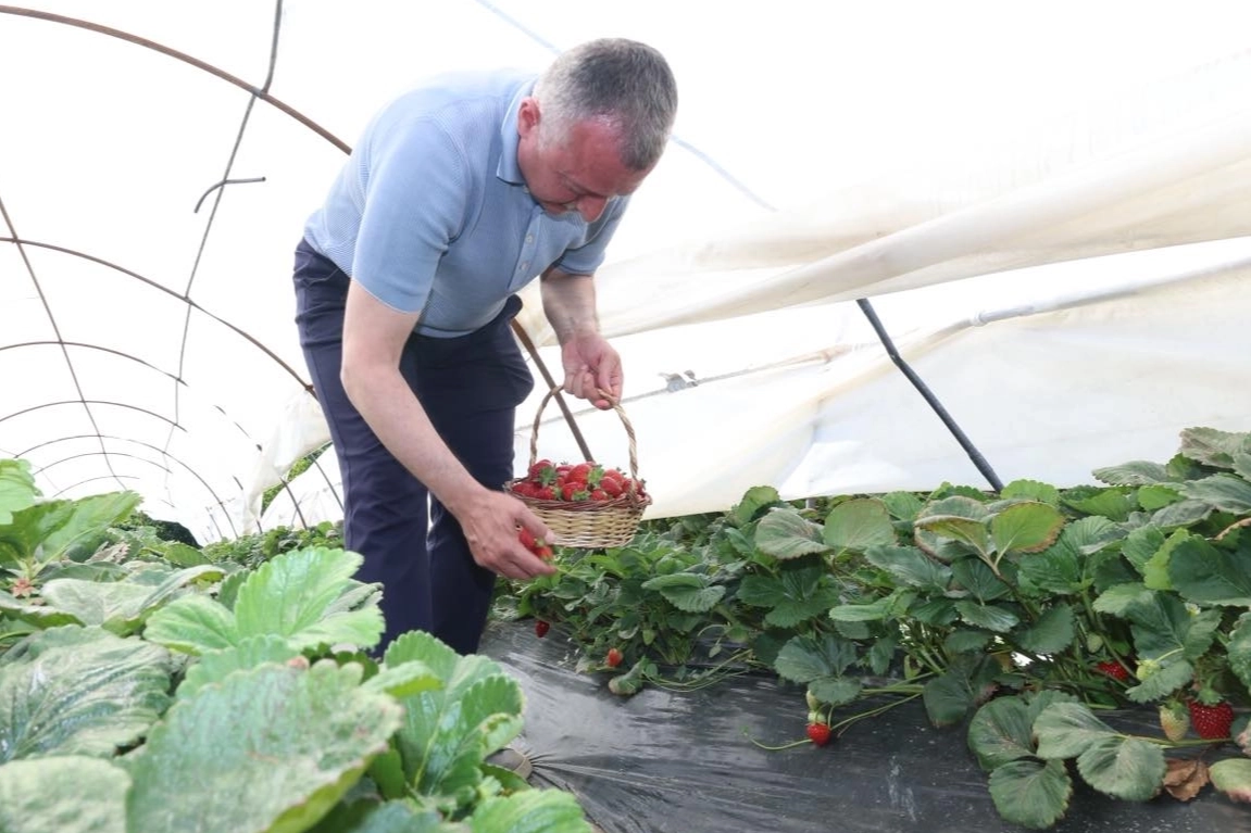 KOCAELİ (İGFA) - Kocaeli Büyükşehir Belediye Başkanı Doç.Dr.Tahir Büyükakın, Karamürsel Akçat Mahallesi’nde çilek hasadına katıldı.