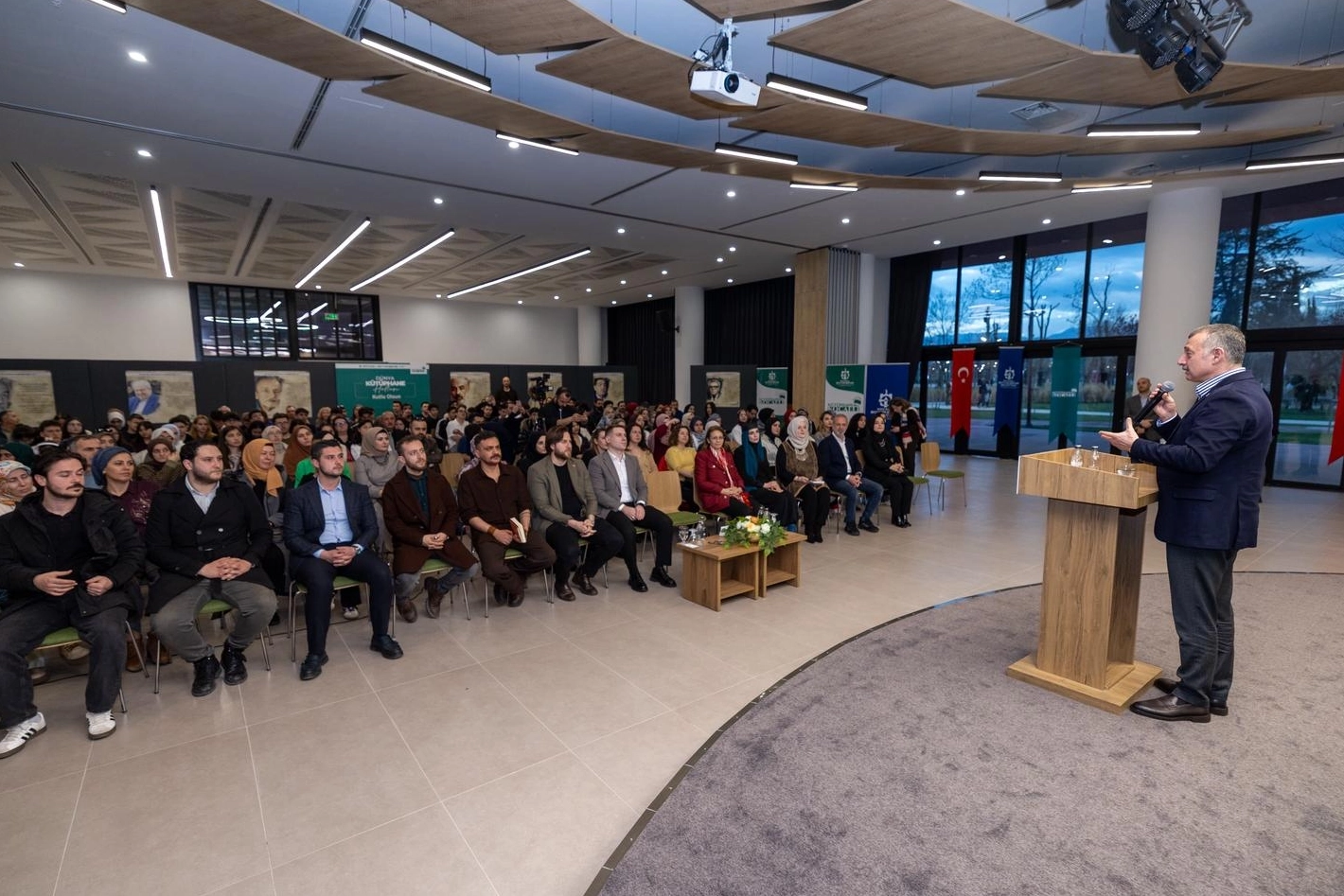 Başkan Büyükakın çok müstesna bir toplulukla bir araya gelmekten duyduğu memnuniyeti dile getirerek başladığı konuşmasında, şehirleri sadece altyapısıyla değil; kültür, sanat ve düşünce dünyasıyla birlikte inşa ettiklerinin altını çizdi. Sanat Galerisi ile yanındaki Alev Alatlı Kütüphanesi’nin bu anlayışın ürünü olduğunu belirten Büyükakın şunları söyledi: “Biliyoruz ki şehirleri biz kurarız, ama o şehirler de bizi inşa eder. Kütüphanelerimizden sanat alanlarımıza kadar attığımız her adım; aklı ve gönlü birlikte büyüten, geleceğe iz bırakan bir anlayışın yansımasıdır.