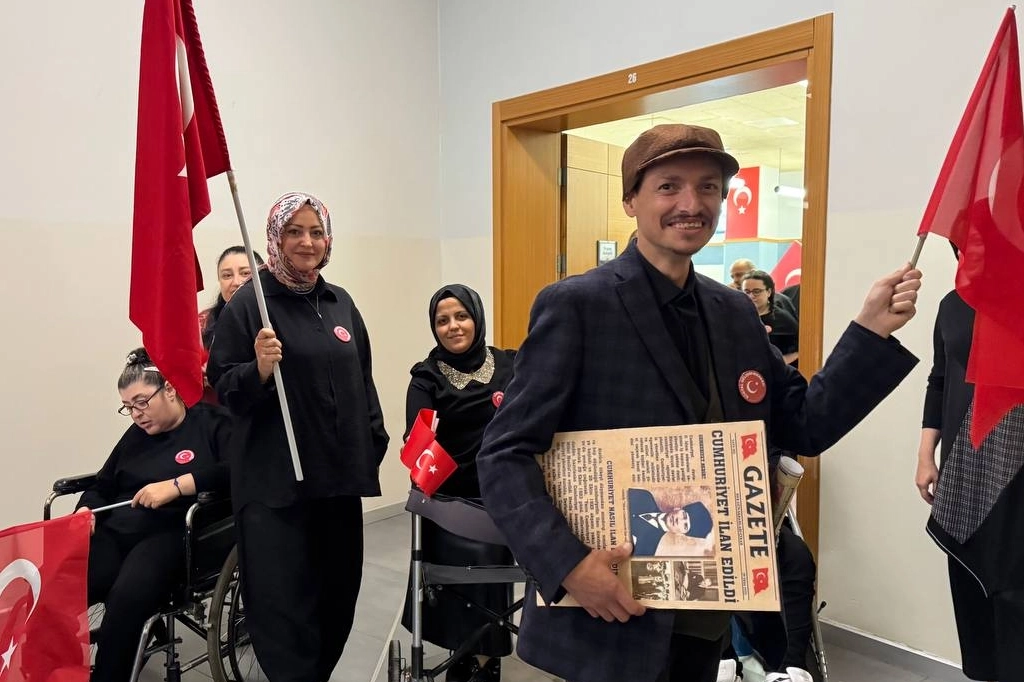 Engelsiz Hobi Atölyelerinde eğitim alan bireyler, hazırladıkları gösteriler ve bayraklı yürüyüşleriyle Cumhuriyet Bayramı’nın ruhunu doyasıya yaşadı.