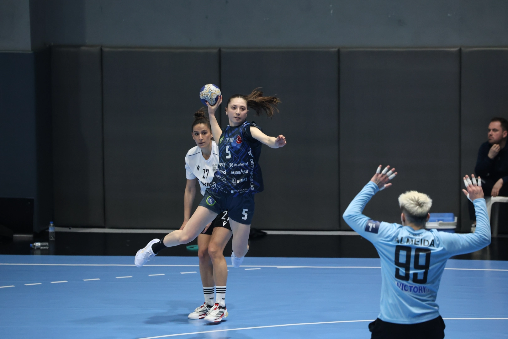 Bu sezon ligde normal sezonu lider bitiren, play-off etabında da zirvedeki yerini koruyan Büyükşehir Belediyespor, Avrupa’da da yarı final yolunda avantajlı bir konumda olabilmek için Üçevler Spor Salonu’nda sahaya çıktı. Kupada daha önce Yunanistan ekibi AEK, İspanya temsilcisi Beti-Onak’ı saf dışı bırakan Belediyespor, PAOK karşısında maça tutuk başladı. Karşılaşmanın 5. dakikasını 5-2 geride geçen Belediyespor hentbol takımı, çabuk toparlandı ve 10. dakikada skora denge getirdi (5-5). Mücadelenin 13. dakikasında 8-7’lik skorla maçta ilk kez öne geçen Belediyespor, 20. dakikada skoru 13-10 yaptı. İlerleyen bölümde farkı açan Bursa Büyükşehir Belediyespor, ikinci yarıya ise 19-14 önde girdi. Karşılaşmanın ikinci devresine etkili başlayan Belediyespor hentbol takımı, 35. dakikada farkı 6 sayıya (21-15) çıkardı. Mücadelenin 45. dakikasını da 28-21 önde geçen Büyükşehir Belediyespor, kalan bölümde farkın erimesine izin vermedi. Son 5 dakikasına 32-27 önde girdiği karşılaşmadan da 36-30 galip ayrılan Bursa Büyükşehir Belediyespor, tur için avantaj elde etti. Karşılaşmanın rövanşı 28 Mart Cumartesi günü Yunanistan’da oynanacak. Bursa Büyükşehir Belediyespor, rövanş maçını kazanması ya da 5 farkla kaybetmesi halinde bile adını yarı finale yazdıracak. SALON: Üçevler HAKEMLER: Jovana Dasic, Charlotte Husomanovic (Norveç) BURSA BÜYÜKŞEHİR BELEDİYESPOR: Sevilay İmamoğlu Öcal, Beyzanur Türkyılmaz 4, Cansu Akalın 3, Yağmur Aktay, Alena Ikhneva 7, Agni Zygoura 1, Joana Fortuna da Costa 4, Sibel Gündoğdu, Emine Gökdemir 1, Yeliz Özel 6, Büşra Işıkhan 2, Farancisca Joao Araujo 4, Zeynepnur Kendirci 4, Yaren Berfe Eren A.C. PAOK: Tsiknaki, Trochidou 1, Mentesidou 3, Gkatziou 3, Andritsou 9, Premovic 5, Milojevic 1, Grbavcevic 4, Olszowa, Burattoi, Mendes, Koulouri 2, Kerlidi 2 DEVRE: 19-14 İKİ DAKİKA CEZALARI: Cansu Akalın, Beyzanur Türkyılmaz, Emine Gökdemir (Bursa Büyükşehir Belediyespor), Grbavcevic, Premovic, Mentesidou, Kerlidi (A.C. PAOK)