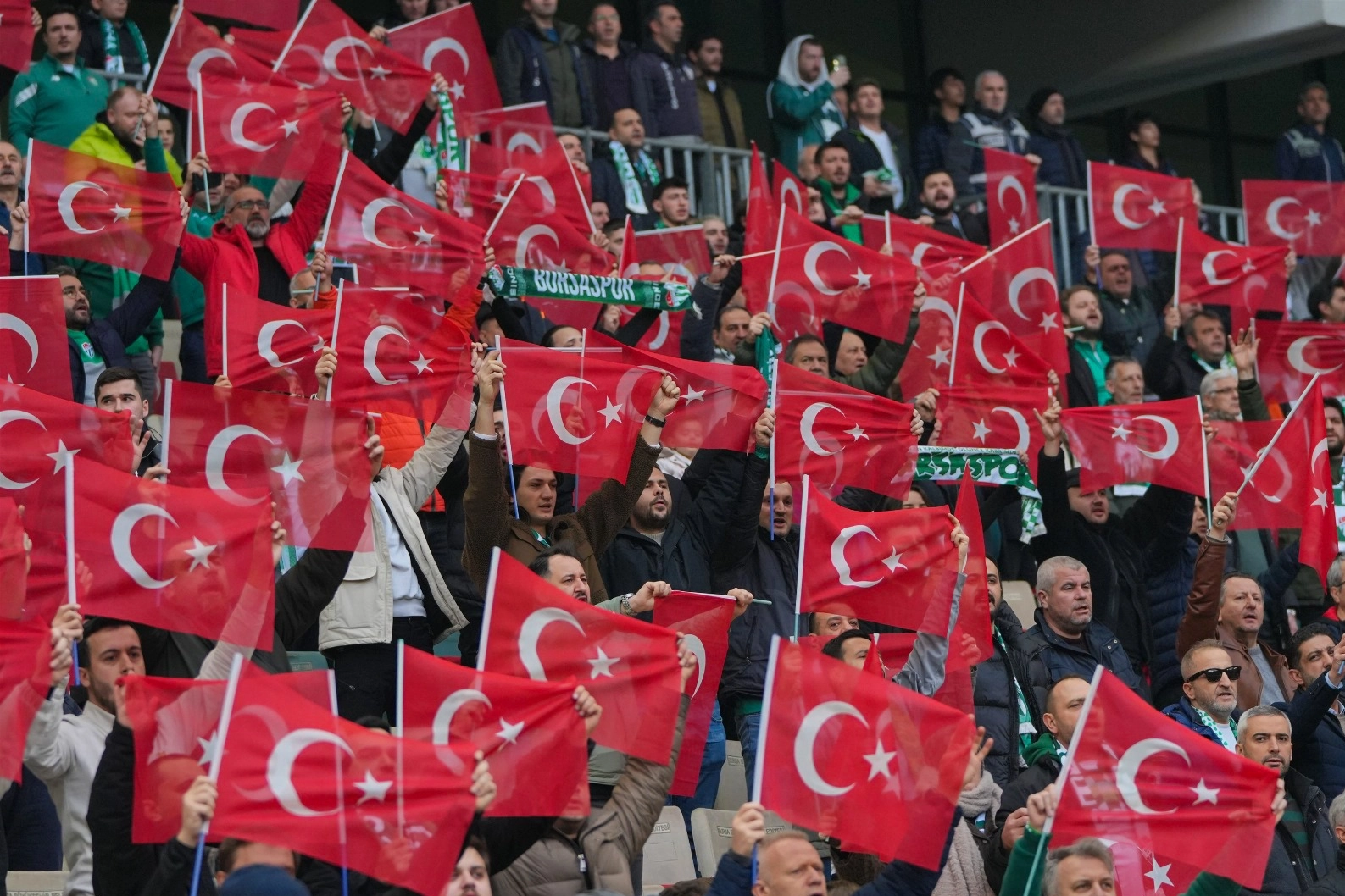 Bursa Büyükşehir Belediyesi, milli birlik ve beraberlik ruhunu tribünlere taşıdı. Bursa Büyükşehir Belediyesi, Bursaspor–Yeni Mersin İdman Yurdu karşılaşması öncesinde Atatürk Spor Kompleksi Matlı Stadyumu tribünlerini Cumhuriyetimizin ve milli bağımsızlığımızın en güçlü simgelerinden biri olan Türk bayraklarıyla donattı. Dağıtılan bayraklarla stadyum adeta kırmızı-beyaza bürünürken, Bursasporlu taraftarların elinde yükselen 40 bin Türk bayrağı tribünlerde görsel bir şölen oluşturdu. Vatandaşlar, milli değerlere sahip çıkmanın gururunu hep birlikte yaşadı. Bursasporlu taraftarlar, bayrak dağıtımıyla milli birlik ve beraberliğe değer katan bu organizasyon dolayısıyla Bursa Büyükşehir Belediye Başkanı Mustafa Bozbey’e teşekkür etti.