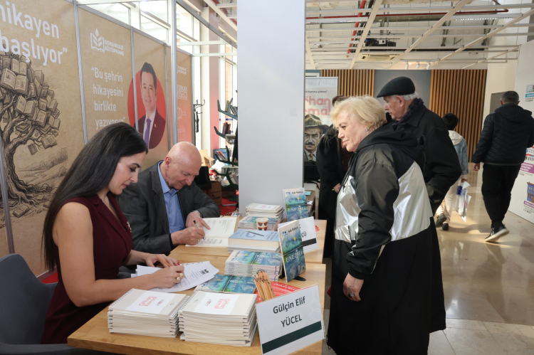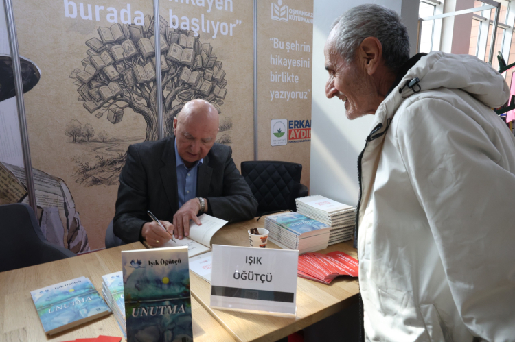 Osmangazi Belediyesi’nin standını da ziyaret eden Işık Öğütçü, burada kitapseverler ile bir