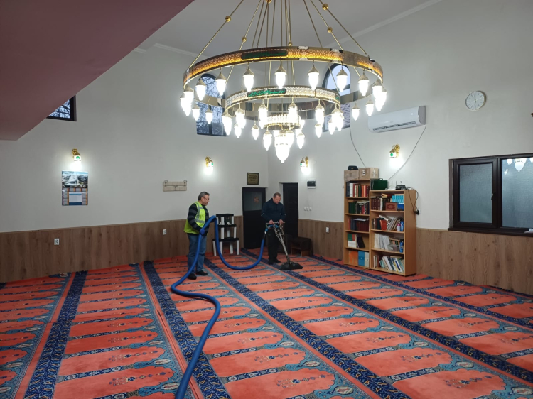 Camilerin iç mekanlarını büyük bir özenle temizleyen ekipler, halıları da hijyen kurallarına uygun şekilde dezenfekte etti. Cami içerisindeki ortak kullanım alanlarını da titizlikle temizleyen ekipler, hoş kokularla ortamın ferahlatılmasını ve ibadete hazır hale getirilmesini sağladı.