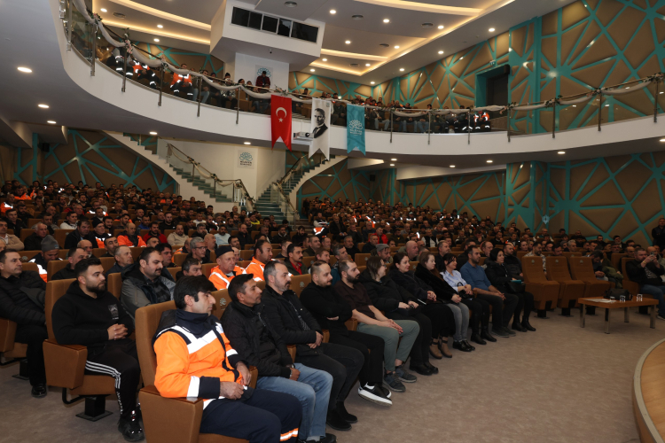 Konuşmasında iş sağlığı ve güvenliği konusuna da değinen Başkan Şadi Özdemir, “Çalışırken daha çok dikkat edin ve birbirinizi uyarın. Ne olursa olsun en önemli nokta sizin sağlığınız. Kurallara dikkat edin” diye konuştu.