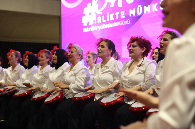 Konuşmaların ardından sahne alan halk dansları ekibi, Nilüfer Belediyesi Kadın Korosu ve Eşitiz Ritim Grubu’nun gösterileri izleyenlerden büyük alkış aldı. Program, Başkan Mustafa Bozbey ve Seden Bozbey’in kadınlarla birlikte Dünya Kadınlar Günü için hazırlanan pastayı kesmesinin ardından sona erdi.