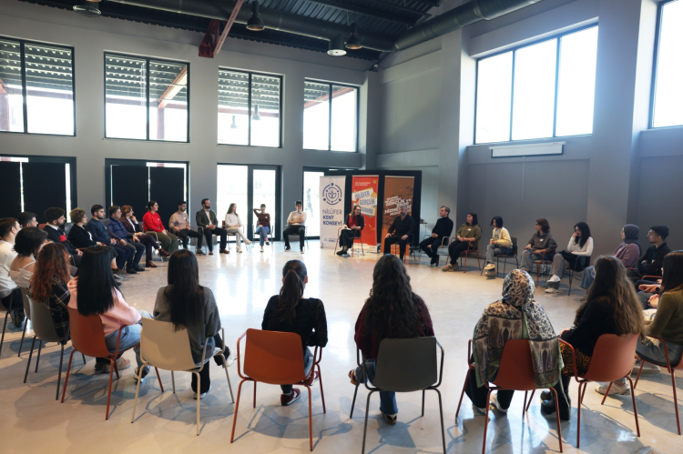 Ardından söyleşi bölümüne geçildi. Etkinliğe katılan Nilüfer Belediye Başkan Yardımcısı Emre Karagöz ve Nilüfer Belediye Başkanı Şadi Özdemir’in eşi Nuray Özdemir de gençlerle bir araya gelerek onların soru ve taleplerini dinledi. Gençler hem merak ettikleri konuları sordu hem de kente dair öneri ve taleplerini dile getirdi.