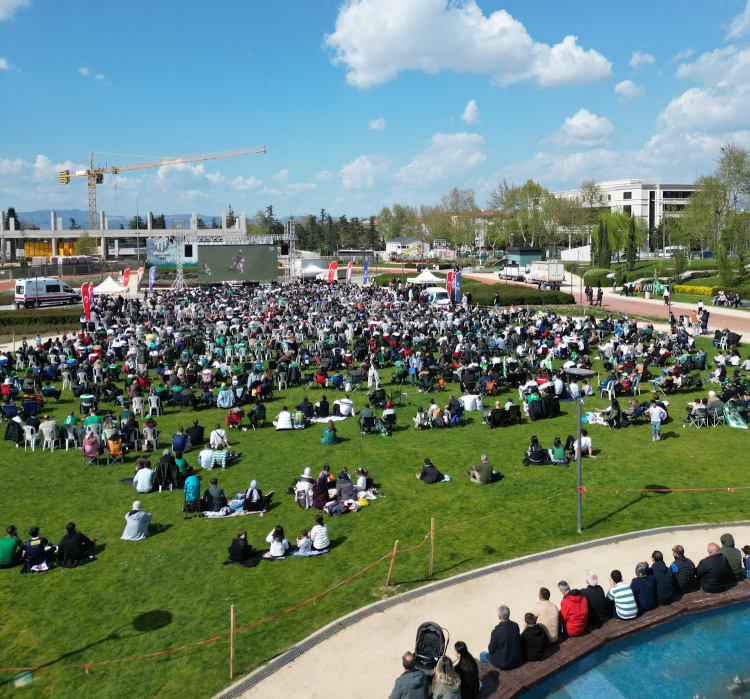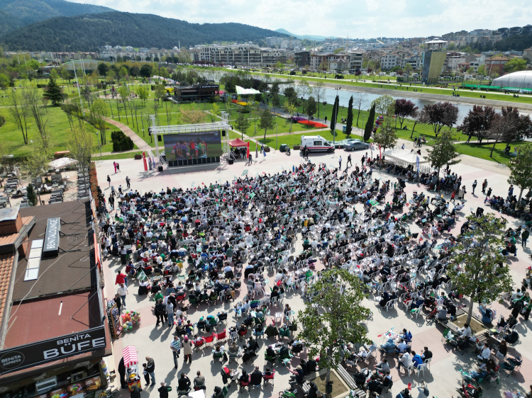 Hüdavendigar Kent Parkı ve Kültürpark Atatürk Stadyumu girişinde kurulan dev ekranlarda şampiyonluk maçını izleyen on binlerce Bursalı, Bursaspor’un 5-1 kazandığı maçın bitiş düdüğüyle birlikte alanı bayram yerine çevirdi. Hem galibiyet hem de şampiyonluk coşkusunu yaşayan Bursalılar, organizasyon için Büyükşehir Belediyesi’ne teşekkür etti.