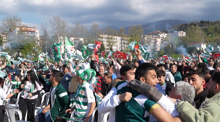 Bursaspor, evinde oynadığı maçta Somaspor’u 5-1 mağlup ederek bitime bir hafta kala şampiyonluğunu ilan etti. On binlerce Bursalı da şampiyonluk maçını Büyükşehir Belediyesi tarafından kurulan dev ekranlarda omuz omuza izledi.