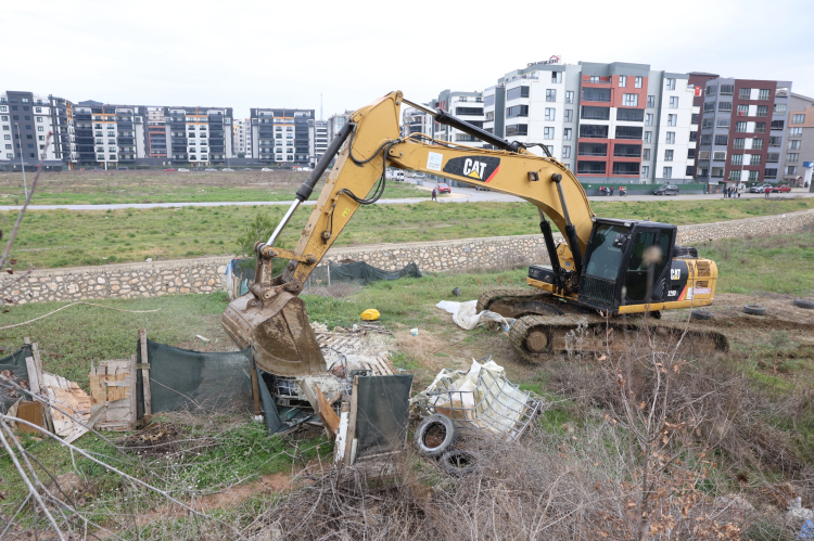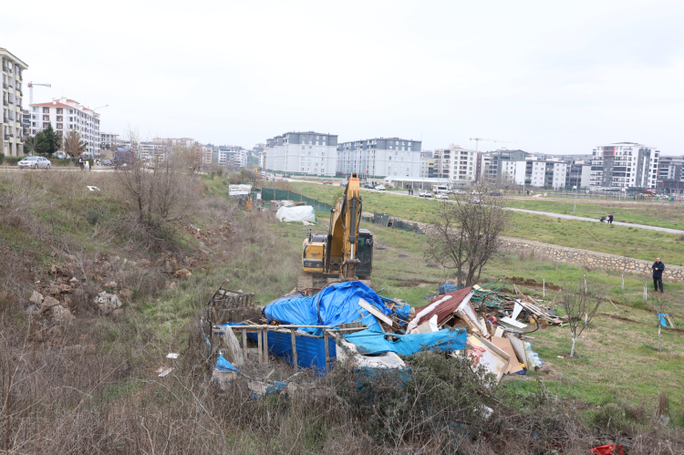 Bursa Nilüfer Belediyesi Balkan Mahallesi’nde kaçak barakaları yıktı