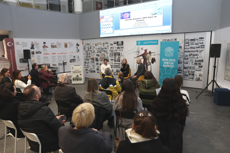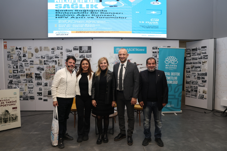 Nilüfer’de Sağlık Buluşmaları kapsamında “Kadın Sağlığında Önlenebilir Bir Kanser: Rahim Ağzı Kanseri, HPV Aşısı ve Taramalar” söyleşisi gerçekleştirildi. Nilüfer Belediyesi Dr. Ceyhun İrgil Sağlık Müzesi’nde moderatörlüğünü Bursa Uludağ Üniversitesi (BUÜ) Aile Hekimliği Ana Bilim Dalı Öğretim Üyesi Prof. Dr. Yeşim Afşar Uncu’nun yaptığı söyleşide, BUÜ Kadın Hastalıkları Jinekolojik Onkoloji Cerrahisi Bilim Dalı öğretim üyeleri Prof. Dr. Kemal Özerkan ve Doç. Dr. Yakup Yalçın konuk oldu.