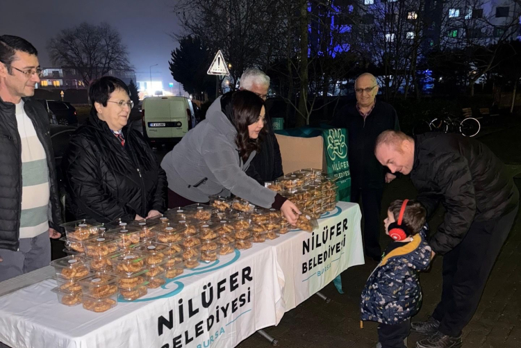 Bursa Nilüfer Belediyesi, Miraç Kandili'nde 15 farklı noktada 7 bin 500 paket kandil simidi dağıttı. Belediye meclis üyeleri ve başkan yardımcıları da katılarak vatandaşların ve çalışanların kandilini kutladı.