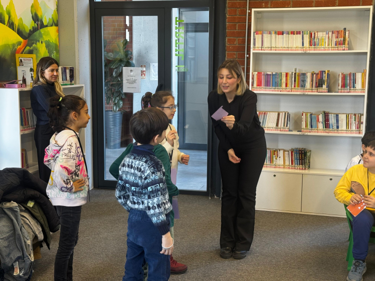 Çocukların etkinliklerinde başka bir durak da Koza Kütüphane oldu. “Kütüphane Dedektifleri Kelimelerin Peşinde” atölyesinde 8-13 yaş arası çocuklar, gruplar halinde rafların arasına gizlenen ipuçlarını takip etti. Dedektif gibi iz süren çocuklar kitaplara ulaşmaya çalıştılar.