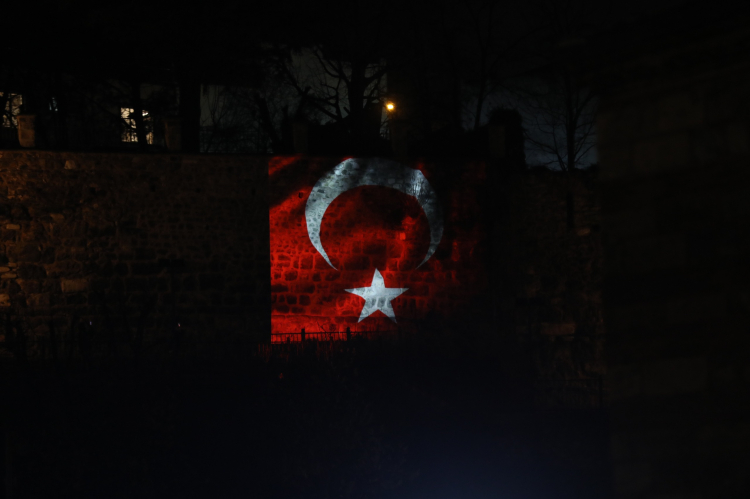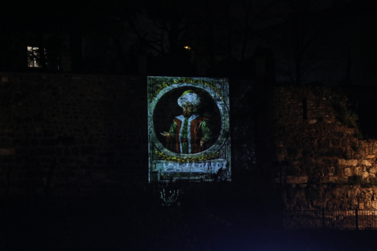 Bursa Büyükşehir Belediyesi, fethin 700. yılı etkinlikleri kapsamında Pirinç Han duvarlarını ve Tophane surlarını birer dev ekrana dönüştürerek Bursalılara görsel şölen yaşattı.