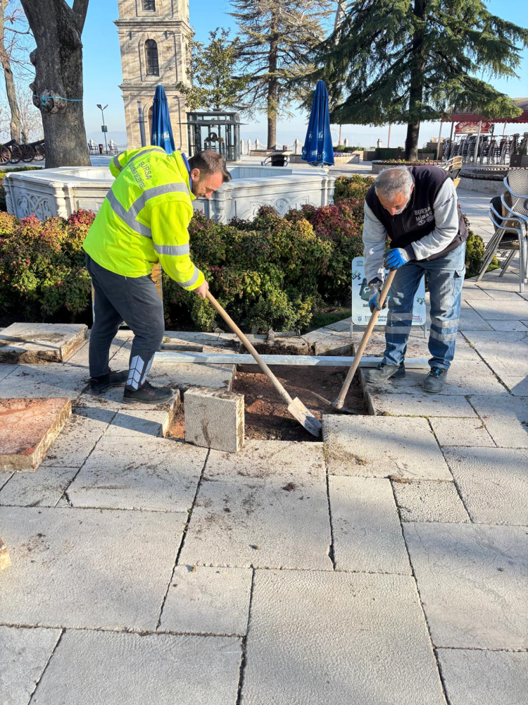Bursa Büyükşehir Belediyesi, kentin simge noktalarından Tophane Meydanı'nda tarihi dokuya yakışmayan yerleri yeniledi.