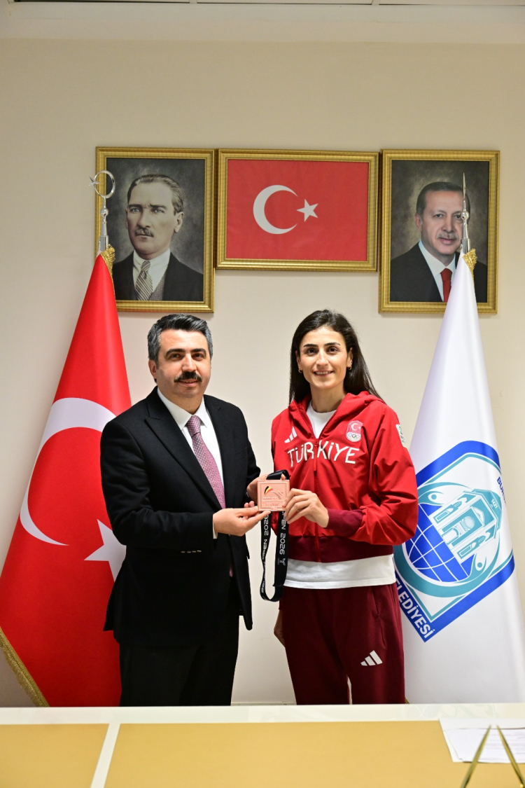 Yıldırım’ın milli takımlarda 28 sporcu ile temsil edilmesinin mutluluğunu yaşadıklarını belirten Başkan Yılmaz, “Hatice Kübra, Bursa’da olimpiyat madalyasına sahip ilk ve tek sporcu. Yine Toprak Aras’ın dartta dünya ikinciliği, Selim Sizüçen’in Avrupa şampiyonluğunun yanı sıra balkan şampiyonlukları ve uluslararası başarıları bizi hem gururlandırıyor hem de motivasyonumuzu arttırıyor. Ülkemizin bayrağını dalgalandıran gençlerimize bugüne kadar olduğu gibi bundan sonra da her türlü desteği sağlamaya devam edeceğiz. İnanıyorum ki bu kardeşlerimizin içerisinden olimpiyat şampiyonları, dünya şampiyonları çıkacak. Bursa’nın ilk olimpiyat şampiyonluğunu şehre getirerek tarih yazacağız” diye konuştu. Başkan Yılmaz ve Yıldırım’ın ay yıldızlı gururları, Dünya Kupası elemelerinde Kosova ile karşılaşacak A Milli Futbol takımına da başarı dilediler.