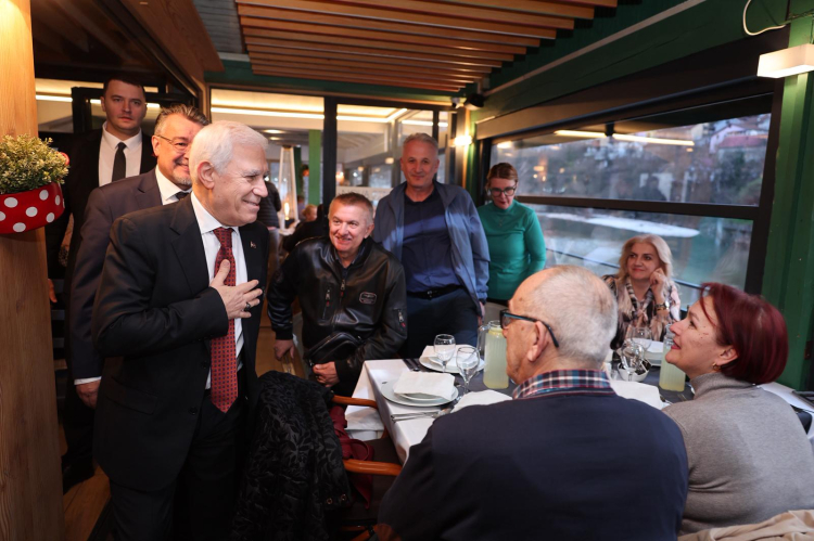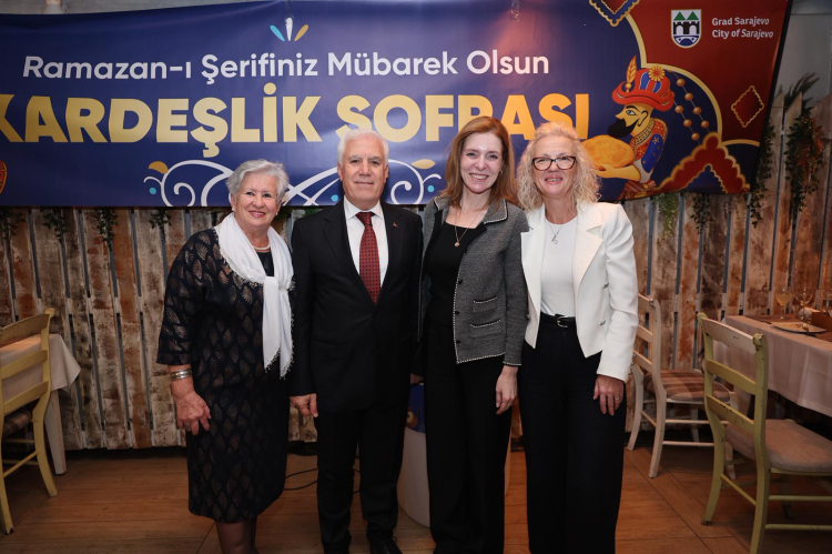 İki şehir arasında kardeşlik ve gönül bağlarının güçlü olduğuna dikkat çeken Başkan Mustafa Bozbey, yaptıkları Ramazan programıyla ilişkileri daha da güçlendirmeyi amaçladıklarını söyledi. Bursa’dan birçok selam getirdiğini belirten Başkan Bozbey, kardeş şehir Saraybosna ile Bursa arasındaki tarihi ve kültürel bağları, iki kent arasındaki iş birliği imkanlarını ve Saraybosna’da yaşayanların gündemini değerlendirdiklerini söyleyen Başkan Bozbey, “Ziyaretlerimizde ikili ilişkileri daha da artırmaya yönelik düşüncelerimizi paylaştık. Hayatını halkının özgürlüğüne, onuruna ve bağımsızlığına adayan Aliya İzzetbegoviç’i ve şehitleri rahmet ve saygıyla andık. Onun bıraktığı fikir mirası ve Bosna Hersek’in bağımsızlık mücadelesindeki kararlı duruşu, bugün de yol göstermeye devam ediyor. Ardından soydaşlarımızla aynı iftar sofrasında buluşarak Ramazan ayının paylaşma, dayanışma ve kardeşlik ruhunu birlikte yaşadık. Bosna Hersek ile aramızdaki güçlü bağları bir kez daha hissettiğimiz bu anlamlı buluşmada gönül köprülerimizi daha da güçlendiriyoruz. Bu sofrayı bizlerle paylaştığınız için hepinize ayrı ayrı teşekkür ediyorum” dedi.