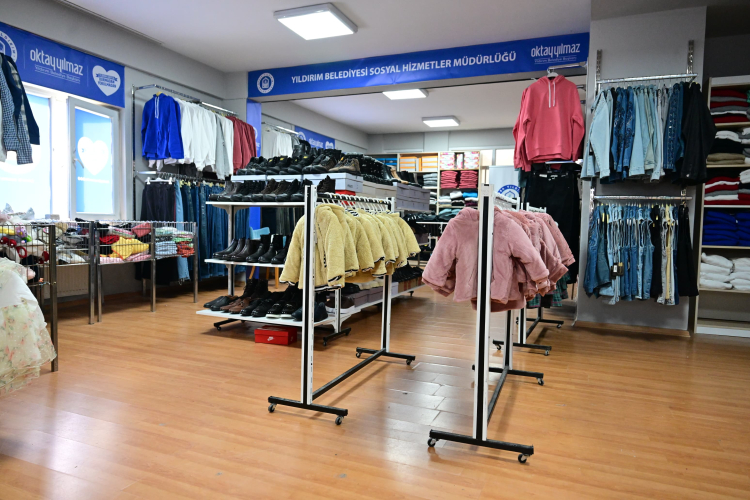 Dayanışma ve paylaşma ayı olan Ramazan’da ihtiyaç sahibi vatandaşları da unutmayan Yıldırım Belediyesi, 5 bin aileye gıda kartı desteği sağladı. Yıldırım Belediyesi Kırcılar Aie Konağı Giysi Mağazası ise bayrama kadar ihtiyaç sahibi vatandaşlara hizmet vermeye devam edecek. Yıldırım’da dayanışma ve sevgiyi büyüten sosyal belediyecelik uygulamarından biri olan mağazadan, ihtiyaç sahibi vatandaşlar faydalanabiliyor. Her yaştan vatandaşın yararlanabildiği mağazada, ihtiyaç sahipleri beğendikleri kıyafetleri ücretsiz bir şekilde alabiliyor.