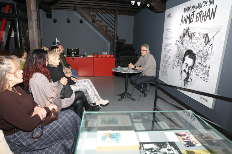 Açılışı yapılan “Kenar Mahallede Bir Ahmet Erhan” sergisi, şairin dünyasına görsel bir yolculuk sunuyor. Küratörlüğünü C. Hakkı Zariç’in yaptığı sergide; Ahmet Erhan’ın kitaplarının ilk baskıları, kişisel fotoğrafları, mektupları ve özel eşyaları yer alıyor.