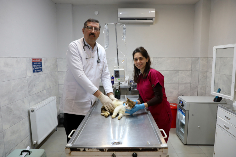 Yaralı kediye Bursa Büyükşehir şefkati